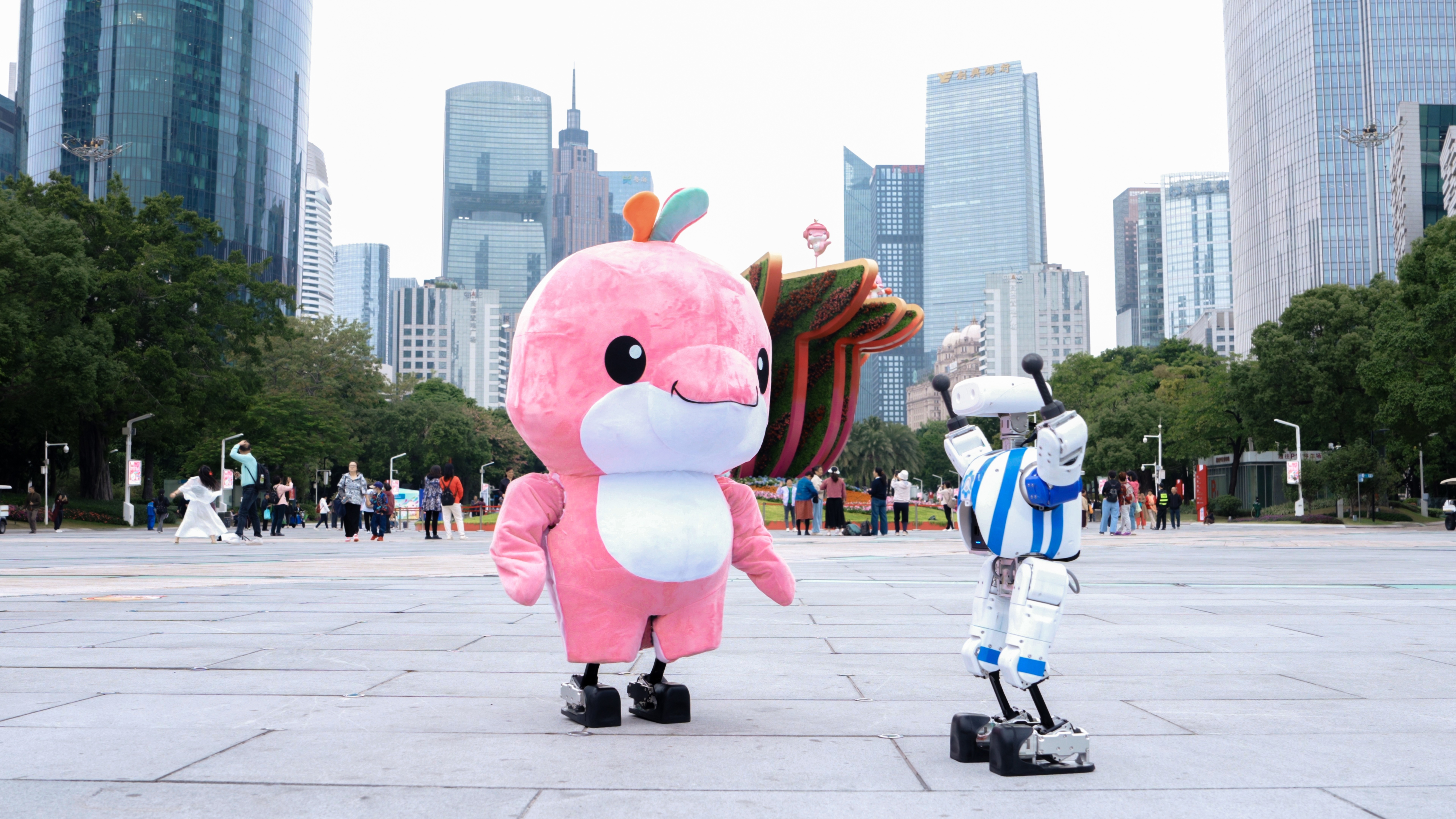 最近就有市民在海心沙、花城广场等城市地标,偶遇了正在四处溜达的迷你吉祥物。